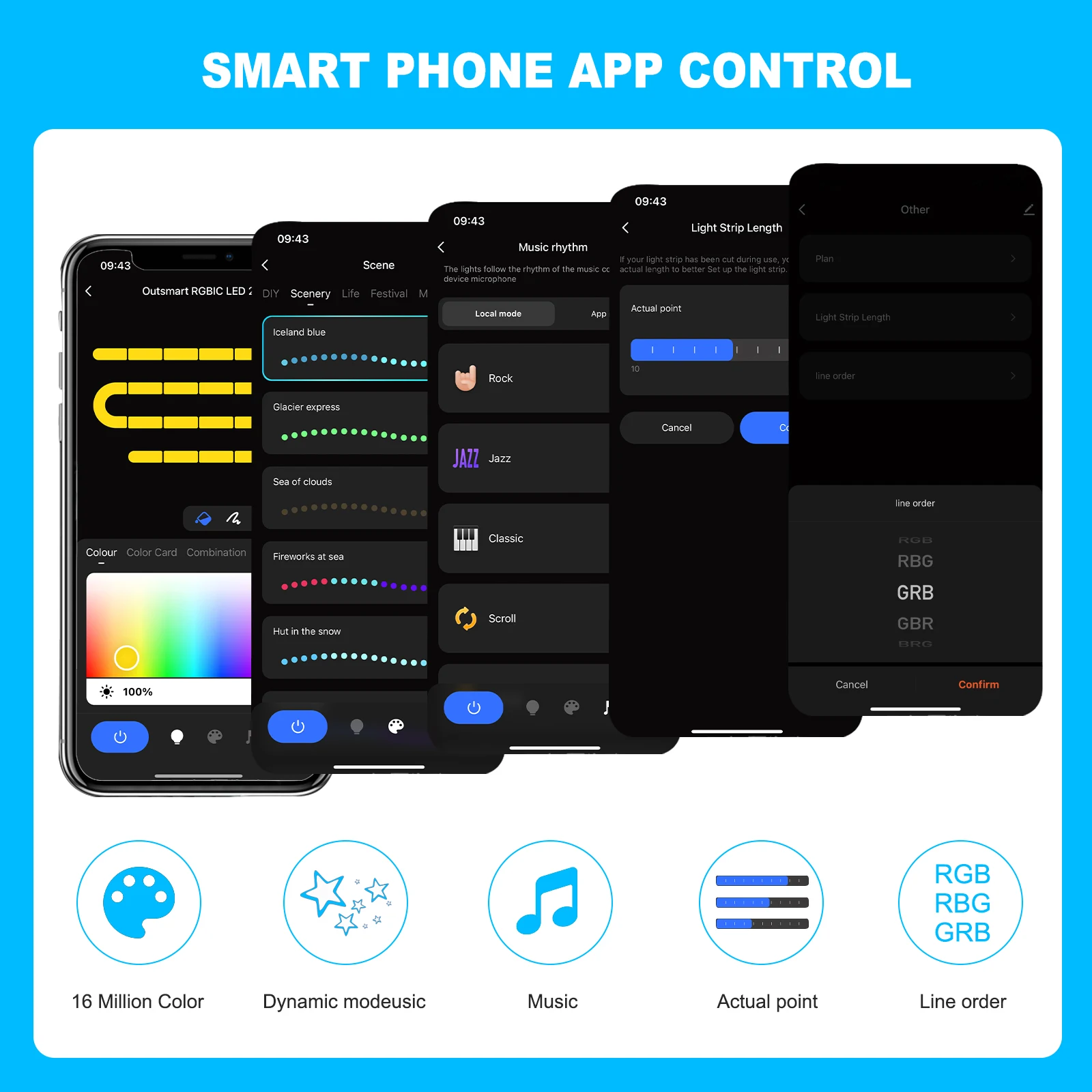 RGBIC Technology – Display multiple colors on a single strip for advanced effects.
